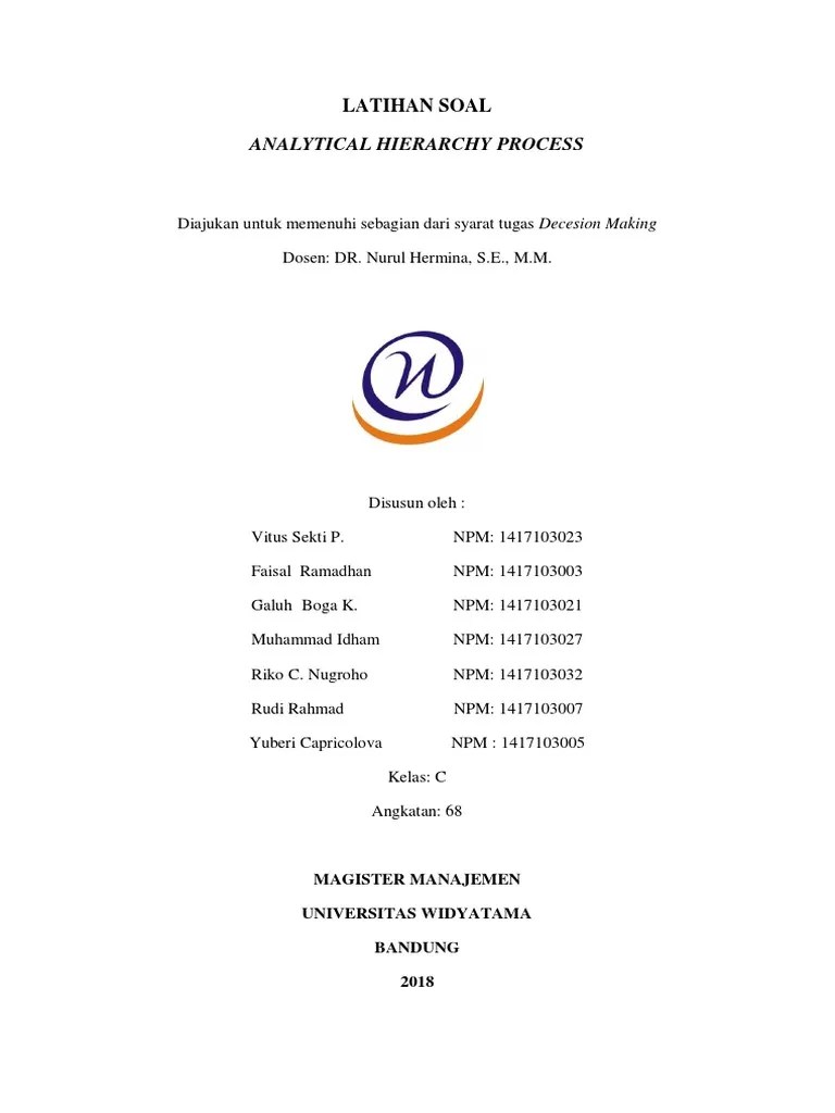 Contoh kasus dengan menggunakan metode ahp analytical. Contoh soal dan jawaban pengambilan keputusan dengan proses hirarki analitik, analytical hierarchy process, ahp. The analytic hierarchy process (ahp) is proposed to solve this problem by weighting multiple decision criteria. Analytical hierarchy process (ahp) adalah salah satu. Personal blog tentang pengalaman membersamai anak, pariwisata, kecantikan, kesehatan dan gaya hidup, literasi, lingkungan dan sosial budaya.
